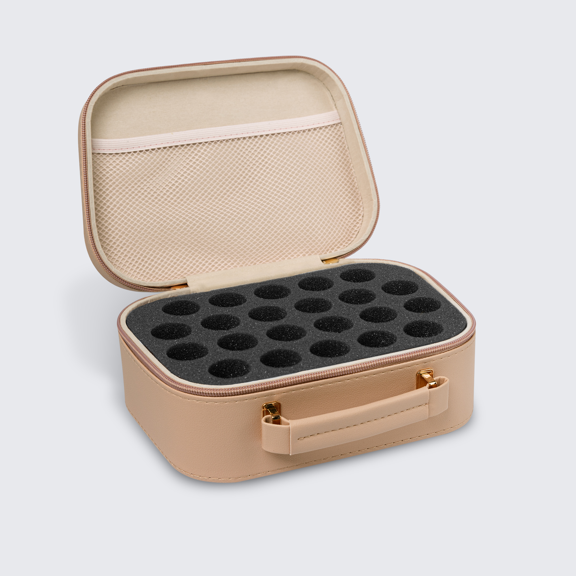 Small foam insert holds up to 22 polish bottles.
